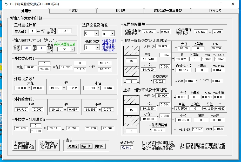 6g的精度要比6h高。 在螺紋測量中,6g與6h均指螺紋環規的精度等級,6g用于內螺紋,6h用于外螺紋。6g的精度等級可以達到0.001毫米,而6h的精度等級一般為0.005毫米,6g的精度要比6h高。 螺紋環規的形狀和用途: 螺紋環規是一種常見的測量工具,主要用于測量螺紋的尺寸和精度。它通常由兩個半圓形的夾爪組成,夾爪的內側刻有刻度線,并且可以通過旋轉調節夾緊程度,以適應不同大小的螺紋測量。螺紋環規通常用于外螺紋測量和內螺紋測量。在外螺紋測量中,測量者將螺紋環規夾在螺紋外側,然后通過讀取夾爪內的刻度來確定螺紋的尺寸。 在內螺紋測量中,螺紋環規夾在螺紋內側,測量者通過旋轉環規直到合適的位置,并讀取夾爪上的刻度來確定螺紋尺寸。螺紋環規是一種簡單實用的工具,其精度等級可以根據使用需求而不同,一般可分為5g、6g、7g等等。除此之外,還有一些特殊的螺紋環規,如帶有微調功能的螺紋環規、電子數字顯示的螺紋環規等,以滿足不同的需求