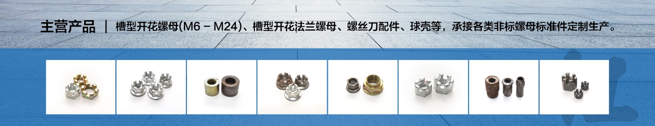 主營產(chǎn)品: 槽型開花螺母 槽型開花法蘭螺母 螺絲刀配件 球殼